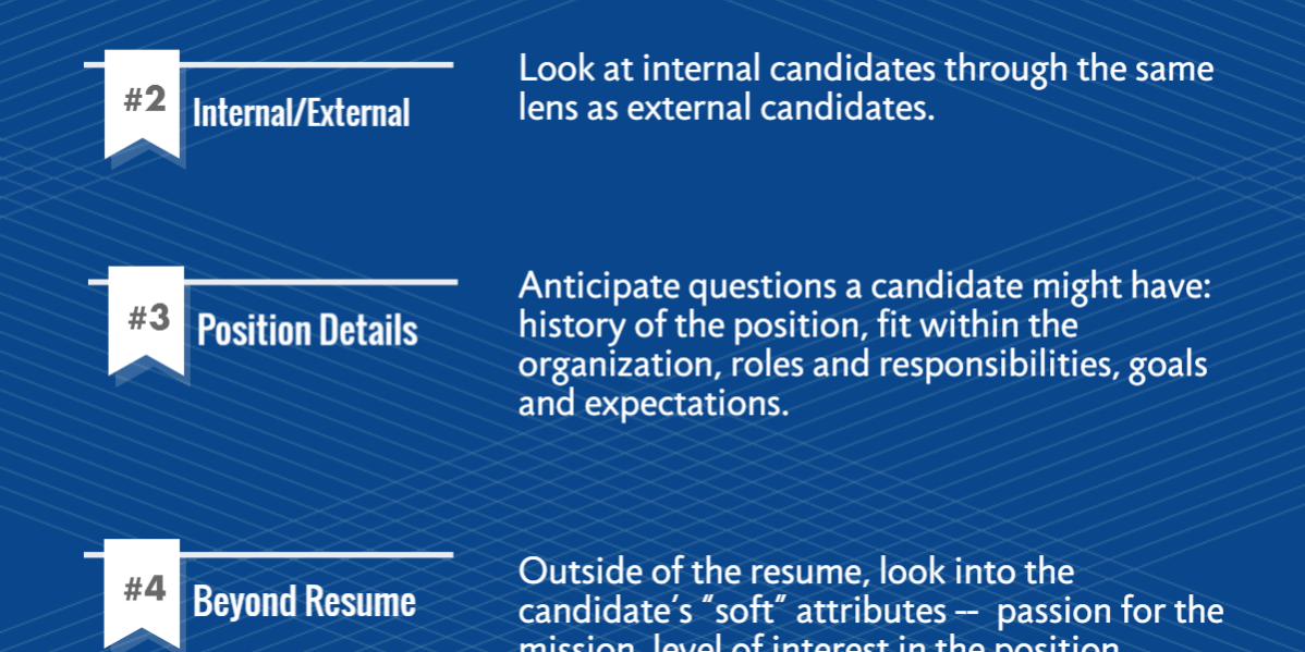 - Identify the preferred candidate and a strong back up. Check references – including peers, subordinates and superiors.